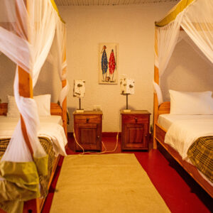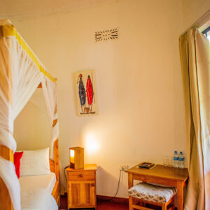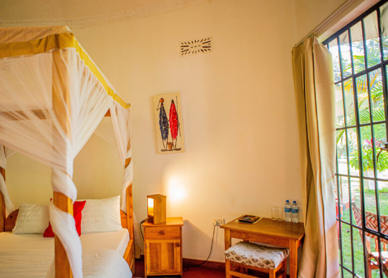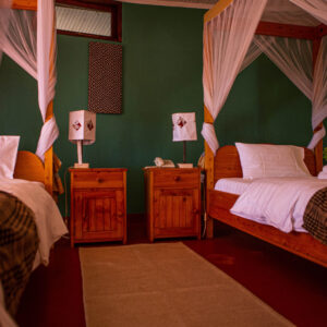 Featuring two comfortable beds and elegant Swahili decor, this double room invites couples or friends into a restful haven. Expect crisp bedding, private en-suite facilities, refreshing garden vistas, and thoughtful amenities for a serene and memorable stay.